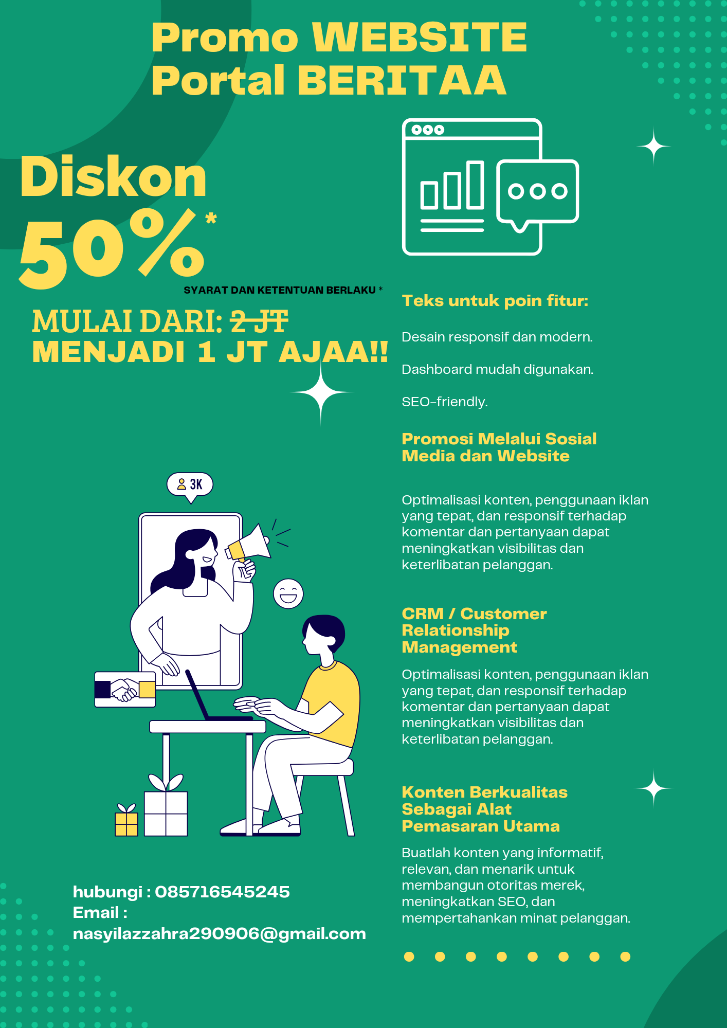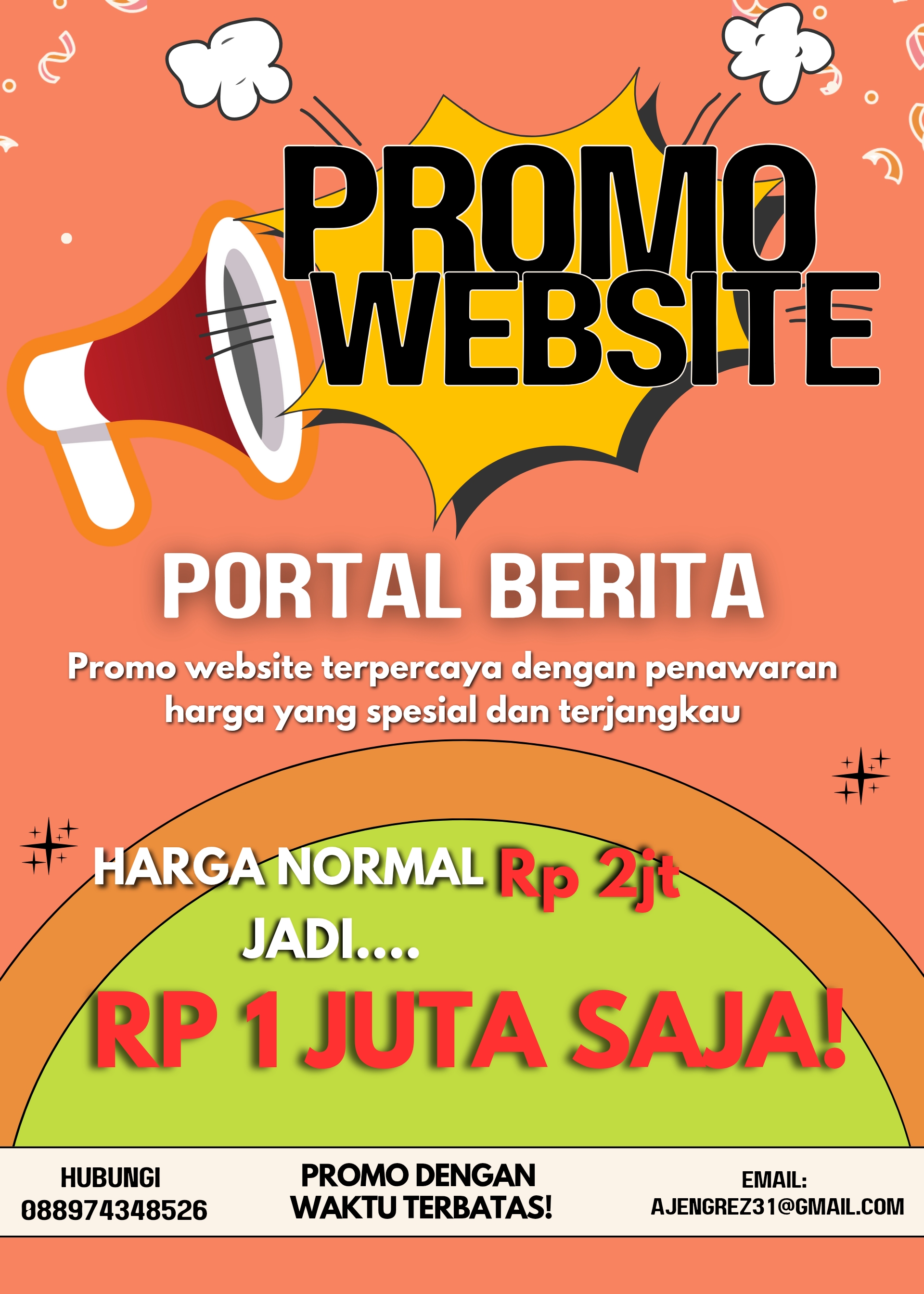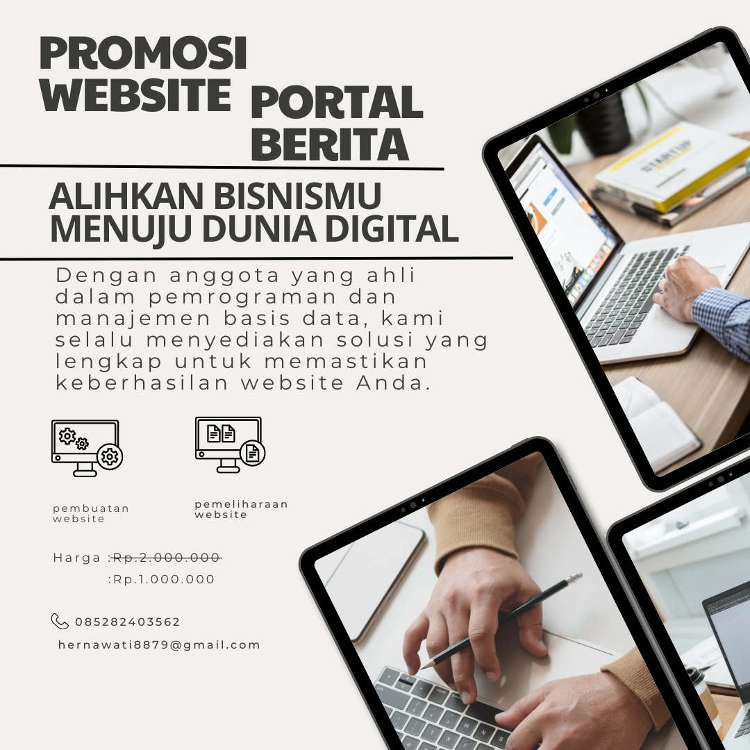 “Jangan ketinggalan! Nikmati diskon spesial untuk pembuatan website. Di jamin akurat, cepat, dan terpercaya. Promo terbatas, segera daftar sekarang!” Dari ...