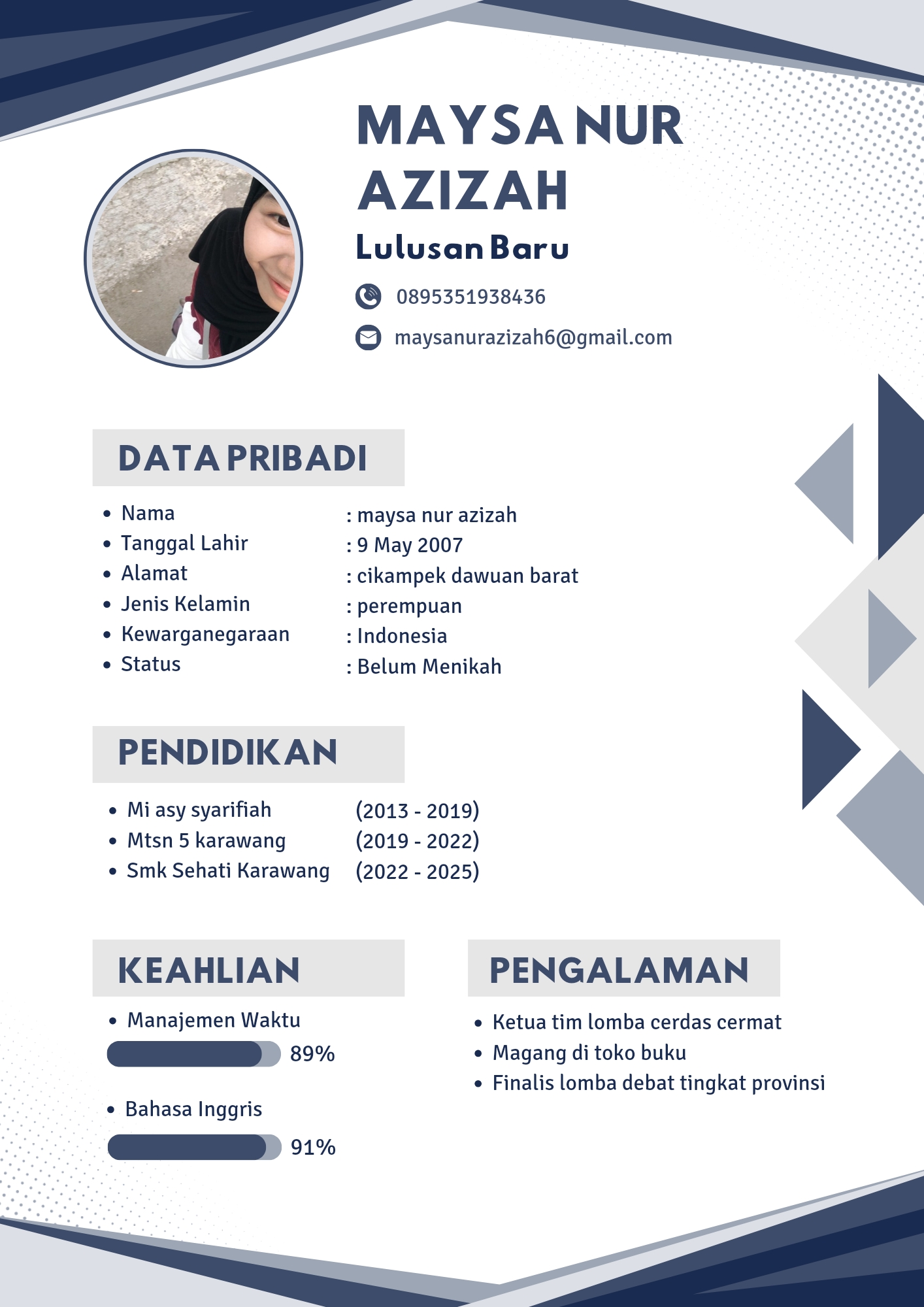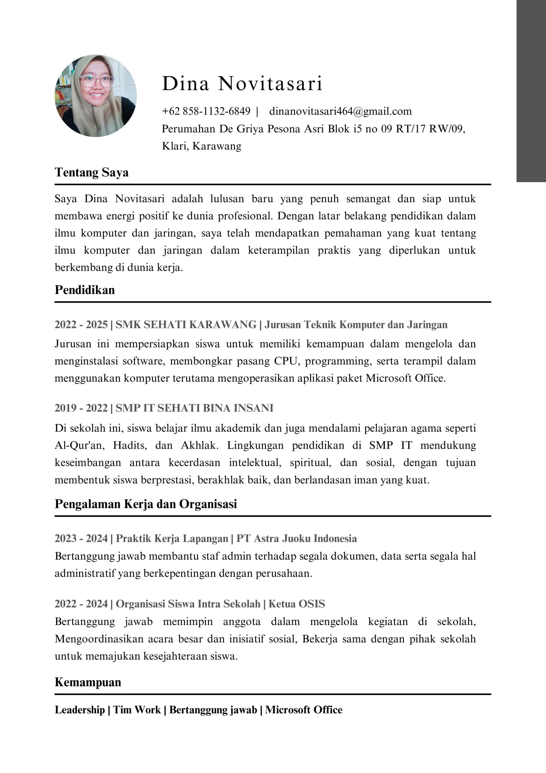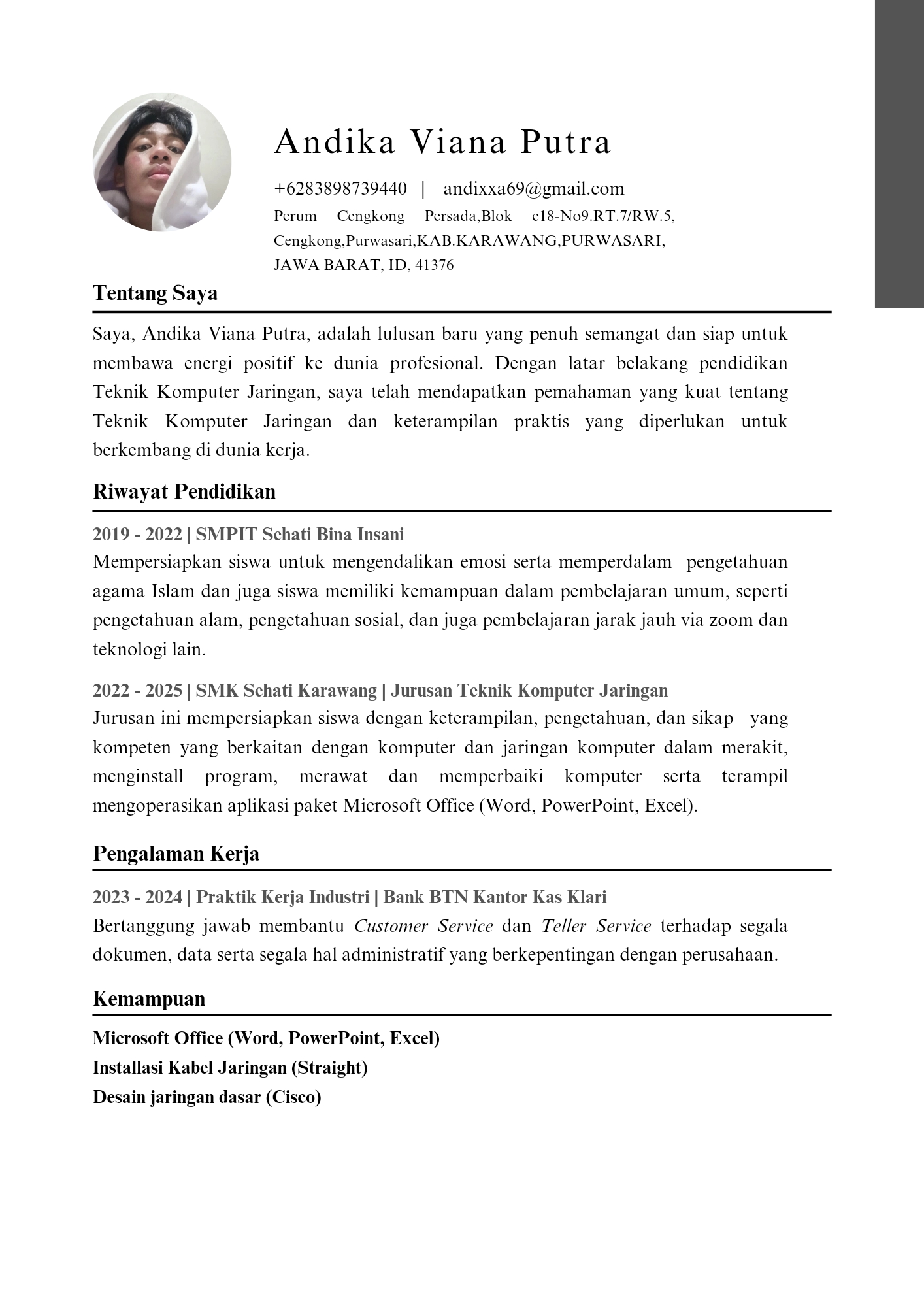 Informasi Pribadi Nama: Daffa Fachri Firjatullah Alamat: perum. Terangsari blok H11 No 22 RT09/RW07, Cibalongsari, Klari, Karawang, jawa barat Telepon: ...