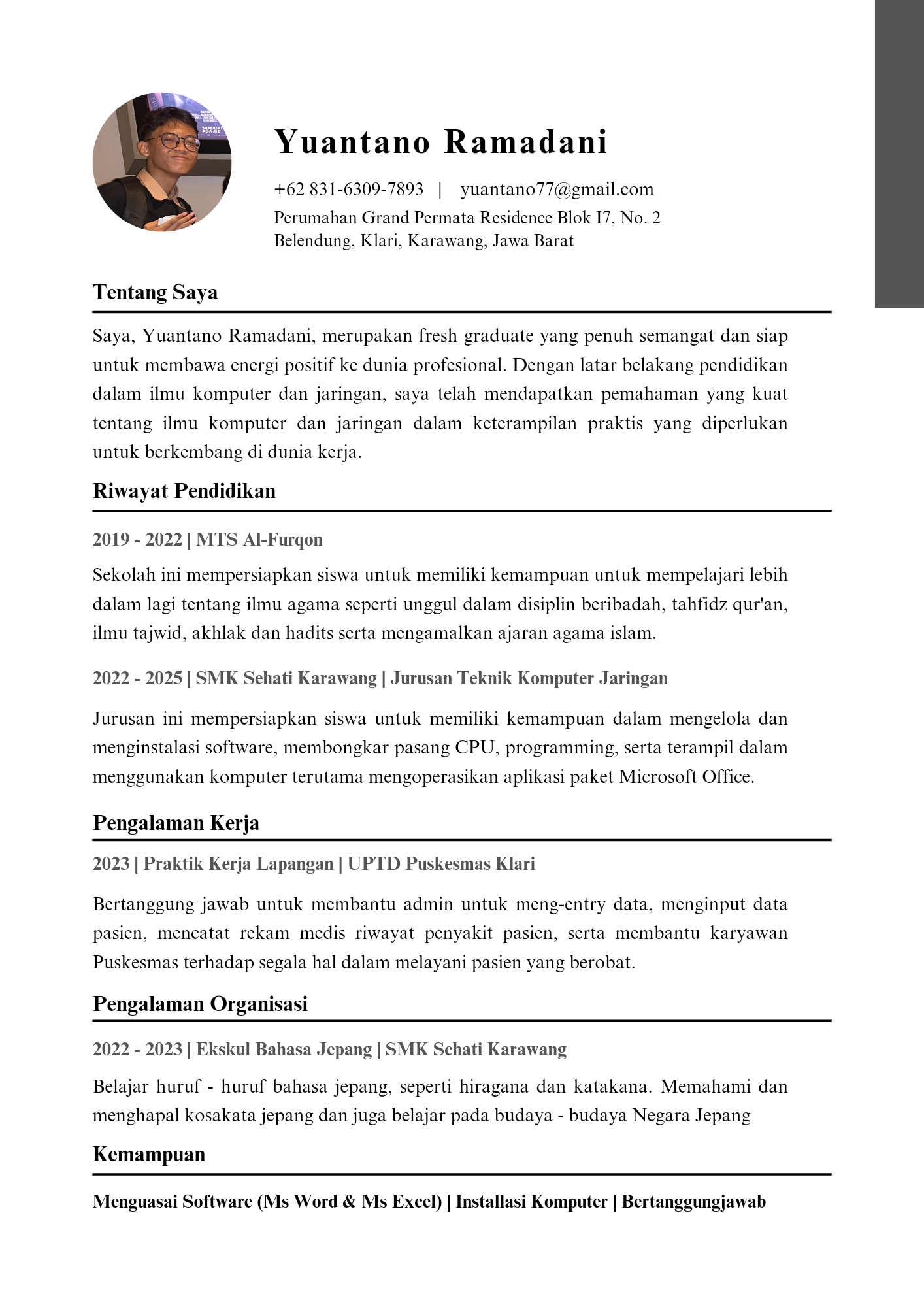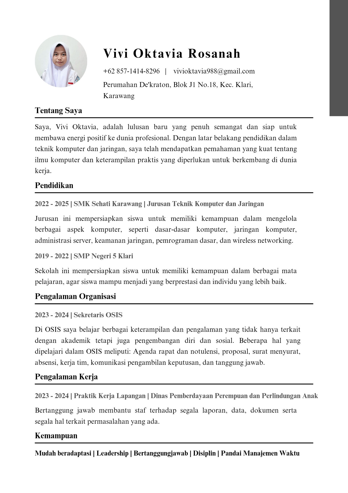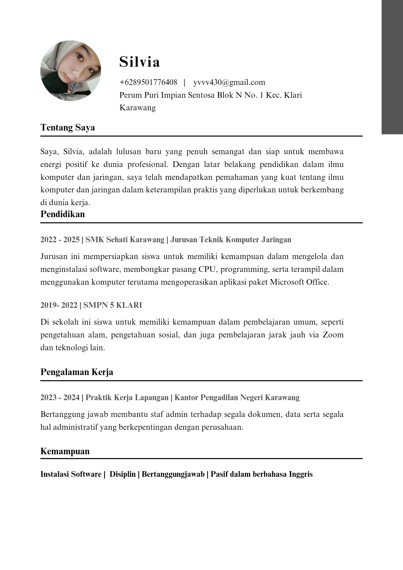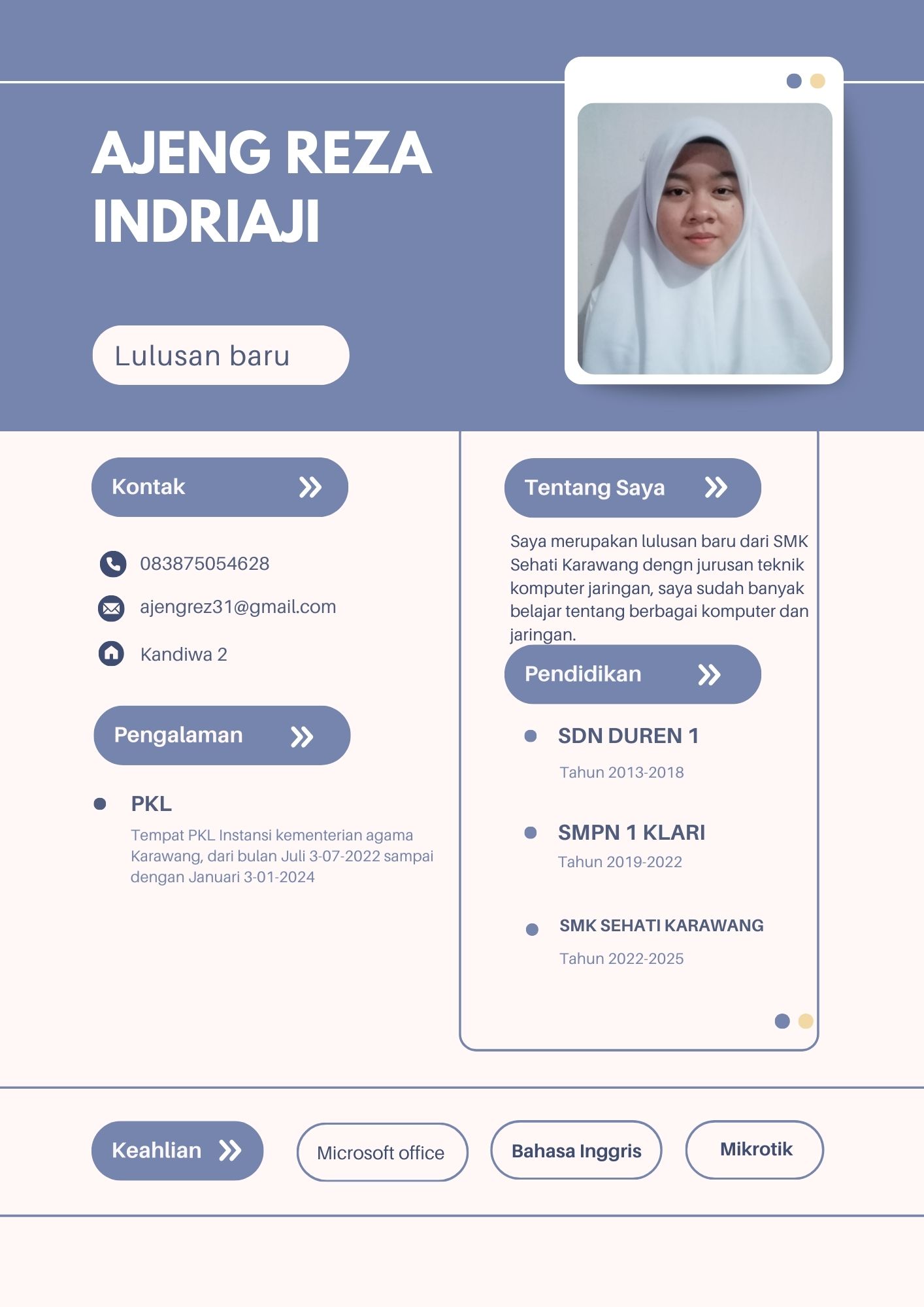 Informasi Pribadi Nama: Daffa Fachri Firjatullah Alamat: perum. Terangsari blok H11 No 22 RT09/RW07, Cibalongsari, Klari, Karawang, jawa barat Telepon: ...